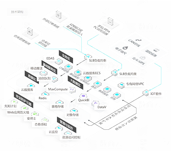 实现物流系统平台,在可用区域内实现高可用性,网络多线路BGP,支持数百万单元的电子商务物流系统。